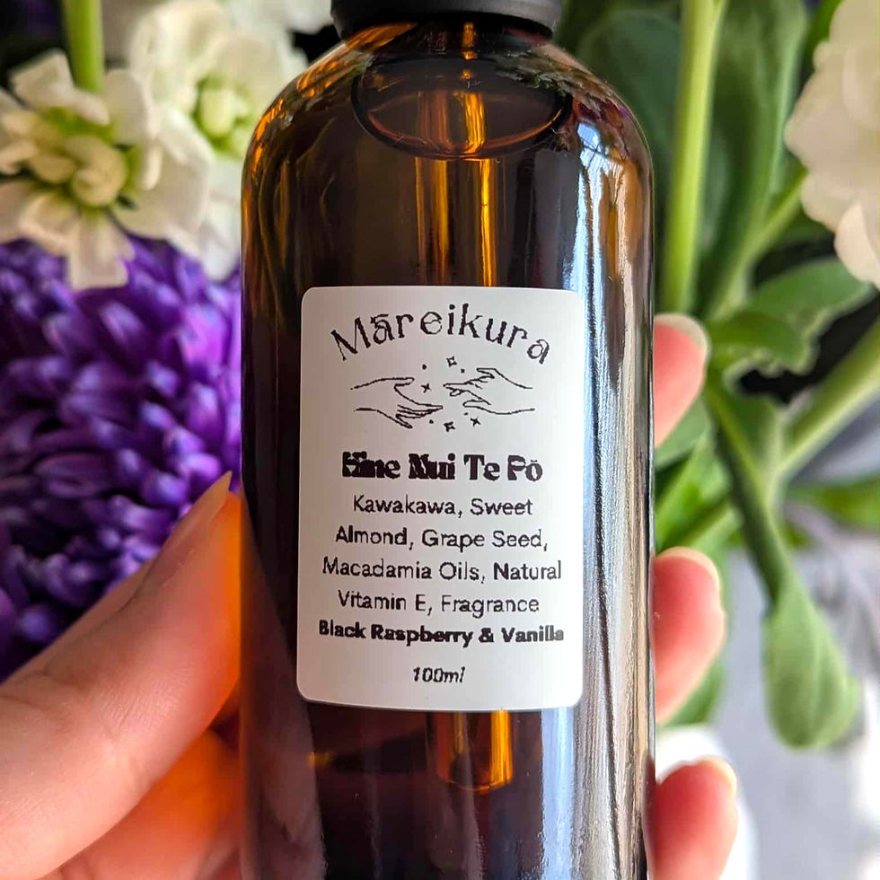 Ingredients: Kawakawa, Sweet Almond, Grape Seed, Macadamia Oils, Natural Vitamin E & Scent.